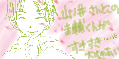 いかんいかん、もっといっぱいいろんなひと描く!と思ってたのにすぐ 山/ノ/井だらけになってしまう。 山/ノ/井パラダイス。山/ノ/井ファクトリー。山/ノ/井まみれ。山/ノ/井120%。山/ノ/井DNA。山/ノ/井アブソーション。山/ノ/井健康増進法。何がなんだか。でもちょっと気が済んだw 寒いよー早く春が来ないかな。暗黙の了解に敢えて立ち入るとします。 今年の春も、我らが桐/青/っこたち始め皆様には各々1・2・3年生をしていただきます。 アタリマヘェ~。成長や大人設定は妄想の中でしてるから大丈夫大丈夫。まだカワイイ学生さんで居ておくれ。 利/央やじんじんが先輩してる姿もいいけどね。それもあくまでも空想でするからね。 *** 今日は・・・えっと。 あの、アイスケーキみたいなやるあるよね。家族で召し上がれオホホみたいなノリの。 アレ、半分食べた。今。そんで猛烈に炭酸飲料が飲みたい。のにない。 ん~・・・お仕事でストレスたまってるとドカ食い気味になって大変よろしくない。 21時まで何も食べなくて家着いたらアイスケーキとパスタと干し芋ですよ。しかも何このチョイス。 U/C/L/Aのサ~モマグ貰った!でかした!オレンジでカワイイのに裏見たら 「MADE IN CHINA」て書いてあった。いいのいいの・・・。別にロサンゼルスで作ったやつとは思ってなかったもん・・・すんすん。 サ~モマグブーム。マイブーム。そんでジューサーもウッカリ買ったからお手製ジュースを中に入れたいなぁぁ。温かいものが長く温かく飲めるのもいいし、スムージーっぽく作って冷え冷えなのもいい。 よし、後はマッサージチェアが欲しい。 どこ置く気。 風邪がめっちゃ流行ってるぽいですね。麻疹もまたちょっと始まってますね。今回は関東周辺というよりも全国的っぽいので皆様手洗いうがいされたし。 PR 2008.01.25 Fri 00:57:42