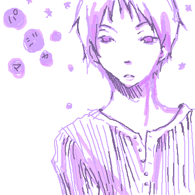 畏れ多き事山の如し・・・。 穴を掘って、真珠貝のポーズ(←ヨガ。マイブーム)して埋まってしまいたい。私は貝になりたい・・・。 けども頂きましたので受け取らせていただきます。 えーつこーえつこヘ夕レる子ー(崖のうえのほうに居るらしいアレの曲で)。 すばるさんから頂きましたよ! ●今からイラストバトン始めますけど心境はどうでしょうか? イラストバトンというかもう現時点でイラっとする感じで悲しいです。 申し訳無さストレート果汁100%です。 ●初めに聞きますが、パソコンで絵を描き始めたのは何歳の時ですか? 1年も経ってないと思います。そう、去年・・・学生鞄とともに絵筆を置いたのです・・・(年齢詐称)。 ●それでは今、パソコンで絵を描き始めてから何年経ちますか? 同上。浅いです。浅瀬はいい漁場といいますけども、熱帯魚も貝類もいない、寂れた海よ・・・女は海ィィィ~・・・。ああやばいな、めっきりオヤジ化だよー。めんどくさい感じの人だよこの空気。 ●最初の頃に書いた絵を見れますか? 物理的には見れますが、ダメージが大きいです。苦行以外何物でもないなソレ。 ↑は、初期のもっともパッショネイトな物でございます。 ●では何塗りをメインにしてますか? メ・・・メインと言えるほどちゃんと塗れてない気がモリモリします。 強いて言えば早塗りです。 ●絵のセンスなど何でも構いませんが見習いたい人尊敬している人はいますか? いいなあすごいなあと思ってばかりです。お相手してくださる方々なんて、すっげえんだぜ!(何故か自慢げ) とりあえずwebで拝見できた絵は見習いたいステキが詰まっております。 ●正直に言ってください。自分の絵に自信持ってますか? どうにもこうにもパッション優先吐き出しblogなもんで、自信持てるのは早さだけで、す・・・。 その早さだって褒められたもんじゃないんですけども、な・・・。 ●それでは次の項目に当てはまる方の名前5人を書いてその人に回しましょう。 ご、五人!?ハードル高いな! 非常にお恥ずかしいバトンでした★てへりんこ(恥ずかしさで動揺)。 結構すばるさんとバトンパス先が被りましたので割愛・・・と都合よくアンカーで!ヘタレっ子ですみませぬご勘弁を。 皆さん丁寧だしそもそも色が付いてなくても綺麗なのでヨダレがたれますじゅるりーな。すばるさん、バトンありがとうございました!お礼に魚のポーズ(←ヨガ。マイブーム)致します。 *** このバトンで伝わったのは、きっと私がヨガにはまってる事だけかと。 ホットヨガに通い始めて早、1年4ヶ月、意外と飽きない・・・。 2008.08.24 Sun 23:44:09