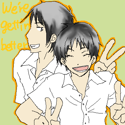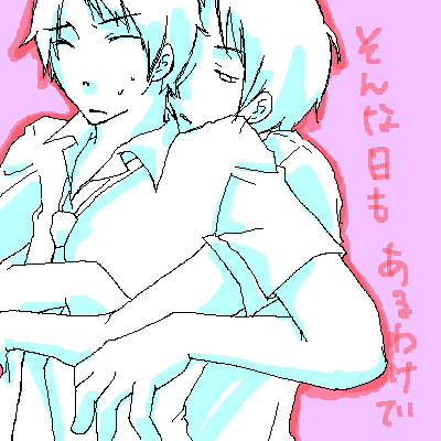 多分、口内炎があるっつってんのにちゅーこいてきてあまつさえ、患部を舌でグリグリしたのではないかと(色気ゼロ)。しないか。イテテテテ。 ただ単にコンコンチキってなんだ・・・?という疑問から、とりあえず準/太に叫ばせてみました。とかく、とばっちり喰らう慎/吾さんですが察しの通り、私は慎/吾さんがだいすきなのです。 ほんとですってヴぁ(ニヤニヤ)。 すきな子ほど苦労させたり謂れのない害を被らせたりしたくなっちゃうの。 *** 口内炎痛いのは私です。治らん・・・ビタミン不足。 ちょういたい。口マジ痛い。こういう時に限って、ノンオイルのグレープフルーツビネガーのドレッシング使ったりとか、あっついお茶とか飲んでみたり激辛のタンタンメン食べてみたりして自分の限界を知りたくてウズウズします。 そこはもう立派な大人なので、無駄に悪化させるようなことは我慢できます。フフン、あの頃の私とはもう違うのよ。 人によって、全然電話取れないひとがおります・・・。一発で取れた事が一度も無いのなぁ。 しかも2回もかけてきてくれたんだけども、どっちも移動中だったり仕事中だったりして申し訳な・・・!こっちもかけるタイミングがなく;あ、時間が空いたらかけよう・・・! 2008.08.25 Mon 01:13:54