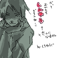 恥じることのみぞ多かりき。 恥ばかりかく人生です。 キーッ、きっと明日は日記書けるか微妙、と思って何となく描いたものの猛烈にコレが一番上に来る時間を短くしたい春の日。 はわわわわ、ホントは誰がふん掴まれてるかわからなくしたかったんだけどよもやの。 神聖な卒業証書片手になにやっとるかー。どうでもいいですが、何を描きたかったって、左端の人の、やり場のない左手だけが描きたかったのです。そういうわけだから、夕ヶ・・・。(あ、言っちゃったv)一度は描きたかった桜散る散る満ちる。なのに・・・。 最近、自分のハードルが低くなった気がする。手つなぎを中心として抱きつきが精一杯だったのですよ。あ、まあコレだって抱きつきっちゃーそうなんですけどもぉ、あの、抱きつきで相当やっちまった感をあらわにして、そりゃもう己の羞恥心との戦いですよ。 でもその負け戦に慣れてきてしまったような・・・。こ、これが大人の階段てやつ・・・!? ああもう、さっさと次描いて下に下ろしたいのでがんばります。 こっぱずかしい落書きと一緒に私信ってどんだけ恥ずかしいの私。 でもめぐるんに突然私信! いやいや、私こそお世話に・・・って6月はいかがなされるかー! いいなぁいいなぁ桐/青/オンリィ。私めぐるんのその行動力だいすき・・・! ネタっぽくない慎/吾/さんは非っ常~に恥ずかしいです。ああ恥ずかしい。 慎/吾/さんが鼻でリコーダー吹こうとしてる絵(at某日絵茶)とかは惜しげもなく描けるのにまじめなのとか超恥ずかしいのです。ヒィアァでもせめてめぐるんに気に入ってもらえたら・・・この恥ずかしさは昇華されると思いますてへへ。 わざわざメルフォありがとうでした!!まためぐるんちにも遊びに行かせてくださいな。 *** 山に登るのとか、すっごい苦手です。イヤすぎて泣いたことあります(あほ)。 のに、のに、のに、仕事を休んでまで山に登らにゃならなくなりそうで断れない・・・。だって日程調整とかし始めてるんだぜ・・・お相手様が・・・。フフ・・・ウフフ・・・。恩が・・・あるので・・・・・・。・・・THE 縦社会・・・。 いっそ「すみません家でネットしてるのが楽しいオタクです蔑みたければそうすればいいじゃないいいいい!!」と叫べば許されるなら、ウン百人が働く職場で叫んでみせます。 そのくらいしんどいです。 にんげんだもの。 あぁいまさら「あの、その日は無理です・・・」とかも言いづらい雰囲気300%です。 登るのか・・・山に・・・。山は山でもヤマちゃんならいいんだよ!ヤマちゃんなら大歓迎ですよ!!(ネジ飛んだ) どうしてあの方は私をそんなに山に登らせたいのか不思議でしょうがない。運動靴持ってないです・・・(アッチャー)。リュック的なバッグも持ってないです・・・。ひっくひっく。 ほんっと、もういい加減2、3年越しで微妙に断り続けてたので一回登れば彼も気が済むかも、と思って 登るかもしれません。諦めも肝心。 にんげんだもの。 そんなに山に登りたそうな顔してんのかな・・・。ムゥミンぽいから谷底に突き落とさなきゃ、って思わせる顔なのかな。超インドアなんだけどな。せめて、せめて仕事を休まないで済む日にして欲しかった・・・。デトックス、と諦めよう・・・ね・・・。 そんなわけで、きっと山に登ると思います(白目)。 むぅみんだもの。 明日は送別会がリストランテであったはず。このいじけた勢いでジーパンとかで出席しちゃわないか不安。 2008.03.23 Sun 20:32:46