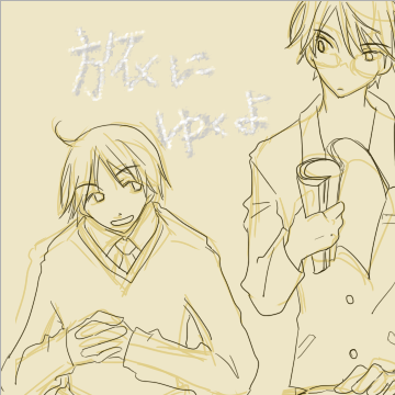 木秦名さんにみえないよ。準/太さんにもみえないよ。 今日も明日もみえないよ。 ざざっと下書きしたときに旅っぽくグラサンでもかけさせようとしたけどどう見てもメガネーだしメガネーしたら木秦名さんがコ賢そうに見えてヤだった(笑)ので無し無し。せっかくだしスーツケースまで描きたかったんだけど狭いからいつの間にか入らなくなっちゃった。 *** ちゅーことで。 行き先が暖かい説・寒い説両方あってまじこまってますけど、 服は現地調達がポリシーなのであえて軽いトランクで ♪私は私はにーほーんーかーらっ(ジャーン) たーびーだ ちーますー。 前、ドレスコード付で飛行機乗せられてえらい窮屈だったんですけど、あまりにもファジーな服装で座ってる人みたらなんだか力がふにゃりと抜けたので、ジャージで行くのとかはやめます。 しかしさー、ジャージとはいえパ.リ.スとかはかっこいいよねぇスタイルがいいよねぇ。そら似合うわよねぇジューシーのジャージ。さておき。 遊んでいられるのも今のうち今のうち・・・。 IKEA寄って本気で家具も買い揃えてから空港ってどういうことだろうか。真剣味がありすぎるんじゃなかろうか、遊びに対して。 |
