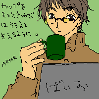 見えませぬ。到底見えませぬ。 修行が必要。日々鍛錬よ! モトさんはさぁ、常識人が、イイナー。 いたって普通の高校生で、優しくて、かっこいくって、 でも回りは個性強い人ばっかりでちょっと被害者なんだけど 「何してんのよー!?」みたいなことばっかりだけど 深刻に迷惑とかぜんっぜん思って無くって ほんと、至って普通の男子がいいな。 普通の、背が高くて野球がすきで髪サラッで結構現状を楽しめる子。 ・・・・・・。すきだ・・・!! モトさんはヤマさんと仲良しなの。とても仲良しなの。 授業中の教室から夕方の部活まで一緒だしね。そんで、2人ともそりゃアレなんだから野球すっごい 上手なんだけど常に飛びぬけたトップ!っていう存在じゃないから必死で、 いろいろ巧くいかなかったり悔しい思いとかいっぱいするんだけど、 ほんとにやられてるときは、お互いが、何となくフォローの手を差し出してるような。 (でも先に差し出すのはヤマさんかなぁ、どっちでもいいけど) だからぁ、スポットライトをバシッバシに浴びないポジションが、結構すきなんだってば! うわぁぁ(脱兎)!! *** 宅配便よ。 私はあと1時間、つまり12時には出かけたいのだが(生業のために) ほんっとーに、ほんっとーに午前中にウチに荷物を届ける気はあるのかい? そしてあと1時間で私は化粧して、バイト用の準備と仕事の荷物まとめて、かつ明日の 夜勤明けのアクティビティのための用意をして出かけられるのかい? 悠長にベーグルをトーストして、二つに切って、 スモークサーモンと温キャベツと粒マスタードはさんだのと この前温泉地の乳製品屋で買ったミルクジャムをはさんだのと コーヒーをまったり飲んでる場合じゃぁなかったんじゃなかろうか。 あまつさえ、ブログやらモトさんの色塗りとか、OKだった?ど? うあー準備準備準太!! 2007.11.15 Thu 00:15:30