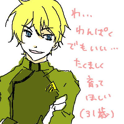 ということDE。 DE じゃない。 利/央、11月に入ったときは覚えていたよ愛しい子・・・!しばらく落書きもできなかったからお絵かきってどんなんだっけと、思いつつも祝わせてもらいたい感じで。 いっぱいの人からたくさんの愛を受け取れる子なんだよいい子なんだよ。でもたった一人のあの人からの投げやりを装った愛が一番うれしいんだよねウッフフフ。投げやりな愛はきっとストレート150km/h(くらい?)、もしくはシンカー。だったりしてウッフフフ。 そんで明日でブログ一周年。やぁ・・・よく書くことあったな・・・。 特に何もできないけど続いてよかったなァ。この飽き性の私が。B型の私が。よく植物枯らせる私が。亀の子のタワシが。 私信は後ほどゆっくり・・・! *** 思えば、遠いところにしたもんだ(今宵の飲み会場)。ちょう後悔。誰か、一緒に来ませんか・・・。 仕事明けの朝からマ★ッ★クでグリ卜"ノレ的なアレを食べておらぁお腹いっぱいで何も食べたくないなぁカッカッカ。 |