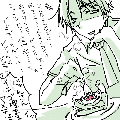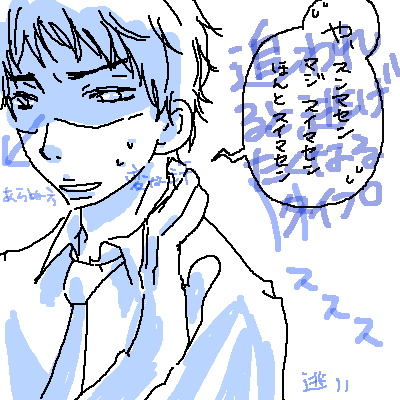 「・・・・・・激レア2連休・・・実り無いまま過ごしたおれの気持ちがわかるかアホンダラぁ。」 人は斯様に、無駄に時間を過ごした事に気づいてしまうともっと無駄に過ごしてしまうのです。そう、例えばガッカリのあまりに横になってみたり、お腹すいてないのに冷蔵庫のマンゴープリンを食べたり・・・。 結構な高確率で準/太さんがダメな、っていうかこんなん準/太じゃないよみたいなぬるっとしたカンジに描いちゃうけれど、だいすきなんです。タレ目が難しくてもだいすき準/太さん。 *** ウワァァァ(我に返った)!!もうもう!せっかくの連休にっ 私がしたことといえば某アウトレットモールにぷっぷーと赴き、秋物の購買意欲があんまりわかないのは今月バカンスするからだよねぇでもバカンス用に今更夏物買ってもねぇ と思ってしまったために何も買わず(ミラクル)、併設のコンビニで公共料金を支払って帰ってきた事と 冷蔵庫のタマゴの消費期限がギリな気がして残ってるホットケーキの粉を全部使って焼きまくったあとで、まだタマゴの期限、3日以上あったことに気が付いて目の前のホットケーキの山に絶望した事 くらいでした。そのほか特記事項なし・・・。なーーー!? ちょ、意味わからんよほんとにどうしてこう、日常のバランスが悪いのかな?かな!? かと言って明後日とか激早番でグロッキーな後に池袋で食事とかなんだけど!?えーじゃあその予定を今日やれという話なんだが、相手様のご都合がね・・・。アハハウフフ断れない私。でも行きたくない私。私が信じる私を信じられない私(混乱中)。 せめて、せめてヤ/マ/ち/ゃ/んの誕生日まで頑張ろうとおもう私・・・。 2008.09.10 Wed 11:01:19
